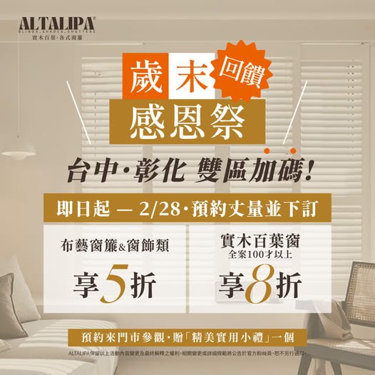 【ALTALIPA】歲末感恩回饋季❗窗飾最低半價❗