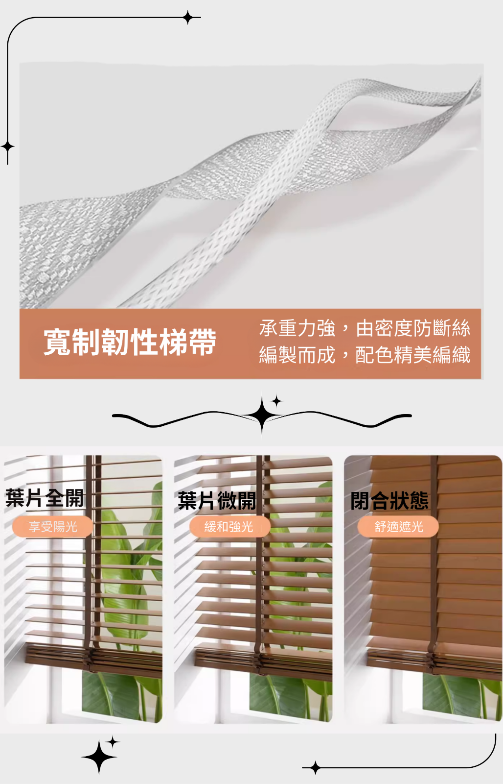 木百葉的葉片堅固耐用,不易變形,適合客廳、臥室、書房等多種空間使用。