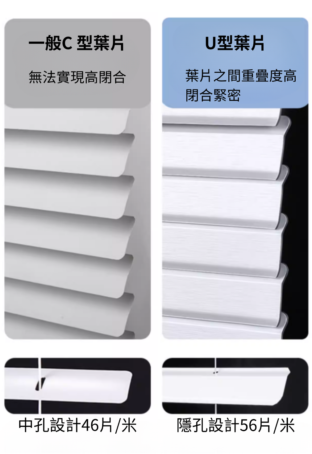 鋁百葉採用鋁合金材質製成,具有耐候性佳、重量輕、遮陽與通風效果良好等優點,廣泛應用於建築外牆與窗戶設計,而目前工廠新推出的隱孔鋁百葉,透過特殊隱藏式孔洞設計,在不影響通風與外觀整體性的前提下,大幅提升遮光與隱私效果,使整體質感與實用性更加提升。